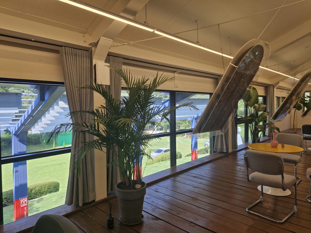 사무실 및 전면창에는 암막커튼  그레이 색상으로 설치 하였습니다.