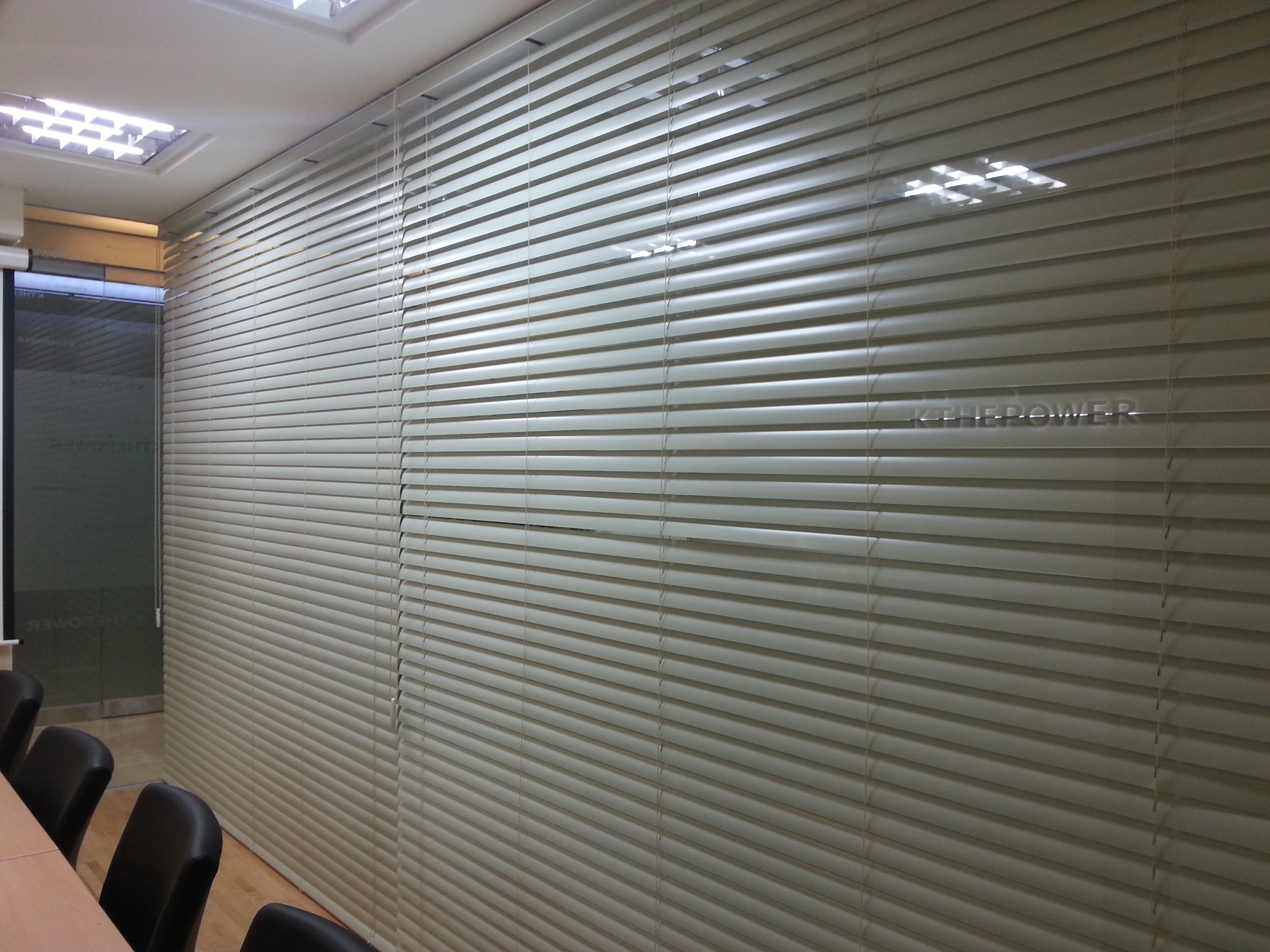 전동 블랙 알루미늄50mm와 화이트 타공 설치 모습입니다.
