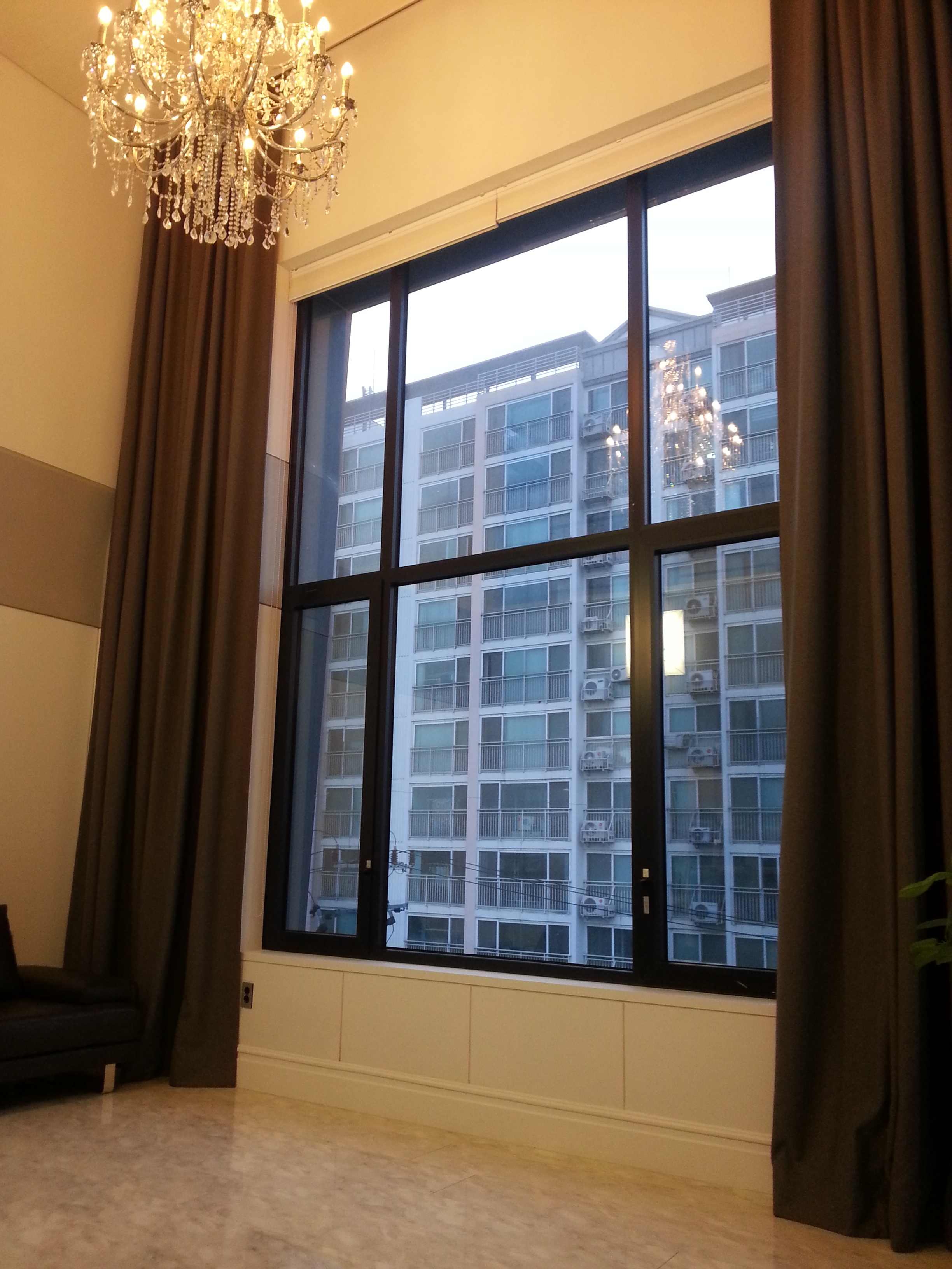 천호동 복층 건물 6M 높이에 커튼을 설치 한 모습입니다.