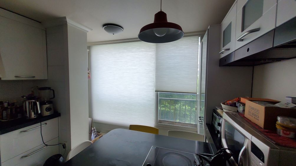 기존에 있던 롤스크린을 철거하고 허니콤쉐이드(HDN101-화이트) 제품으로 설치를 하였습니다.