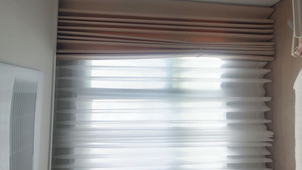 커튼  겉지 형상기억(베이지)+속지(쉬폰-화이트)